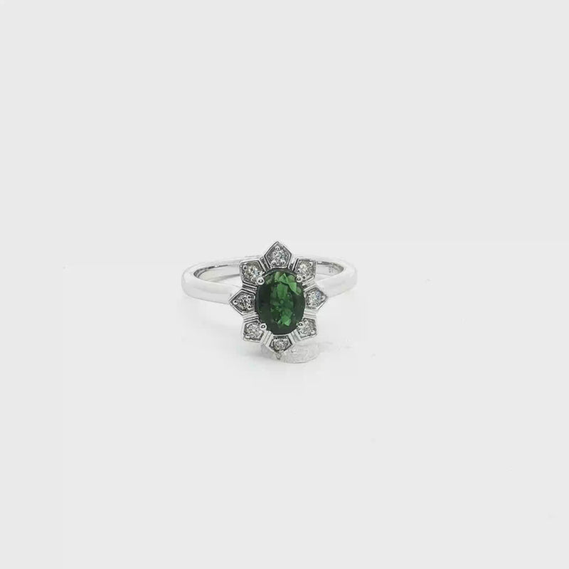 14 K wt Fashion Ring With 1= 0.73TW Oval Tsavorite Garnet And 8=0.10TW Round Diamonds Size 6.75