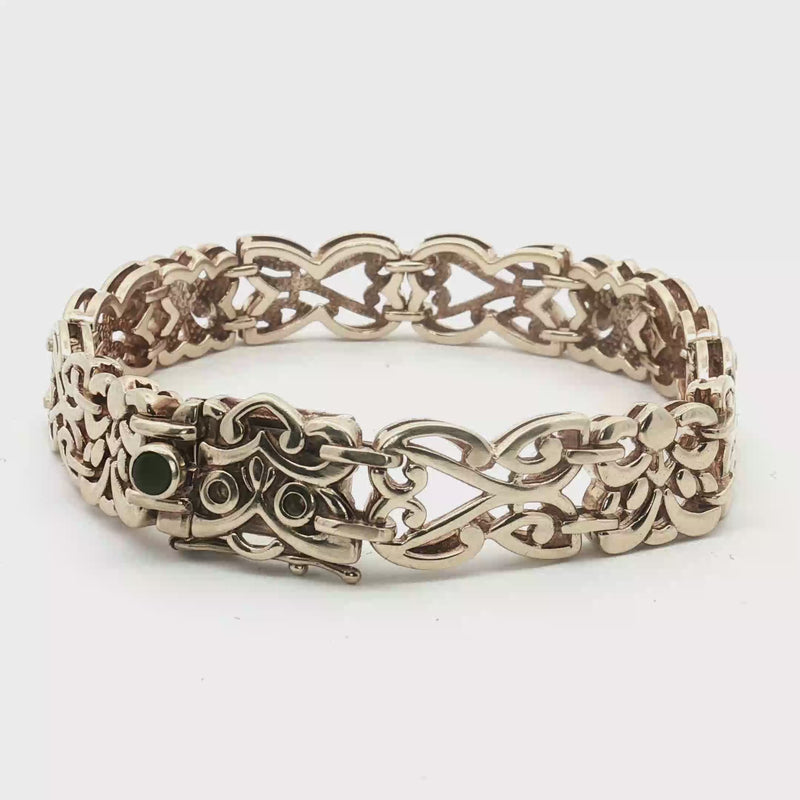 14 K Y Byzantine Bracelet With 3mm Green Cabochon Accent
